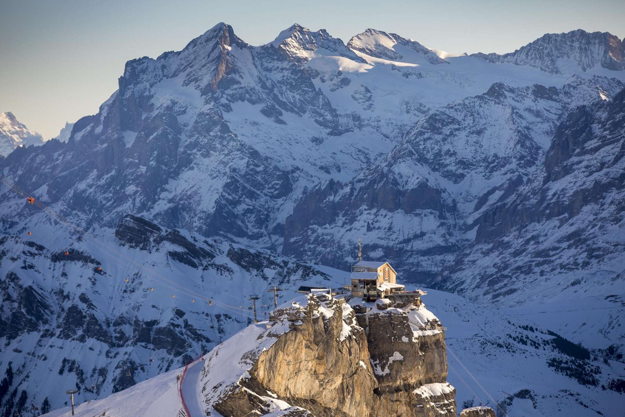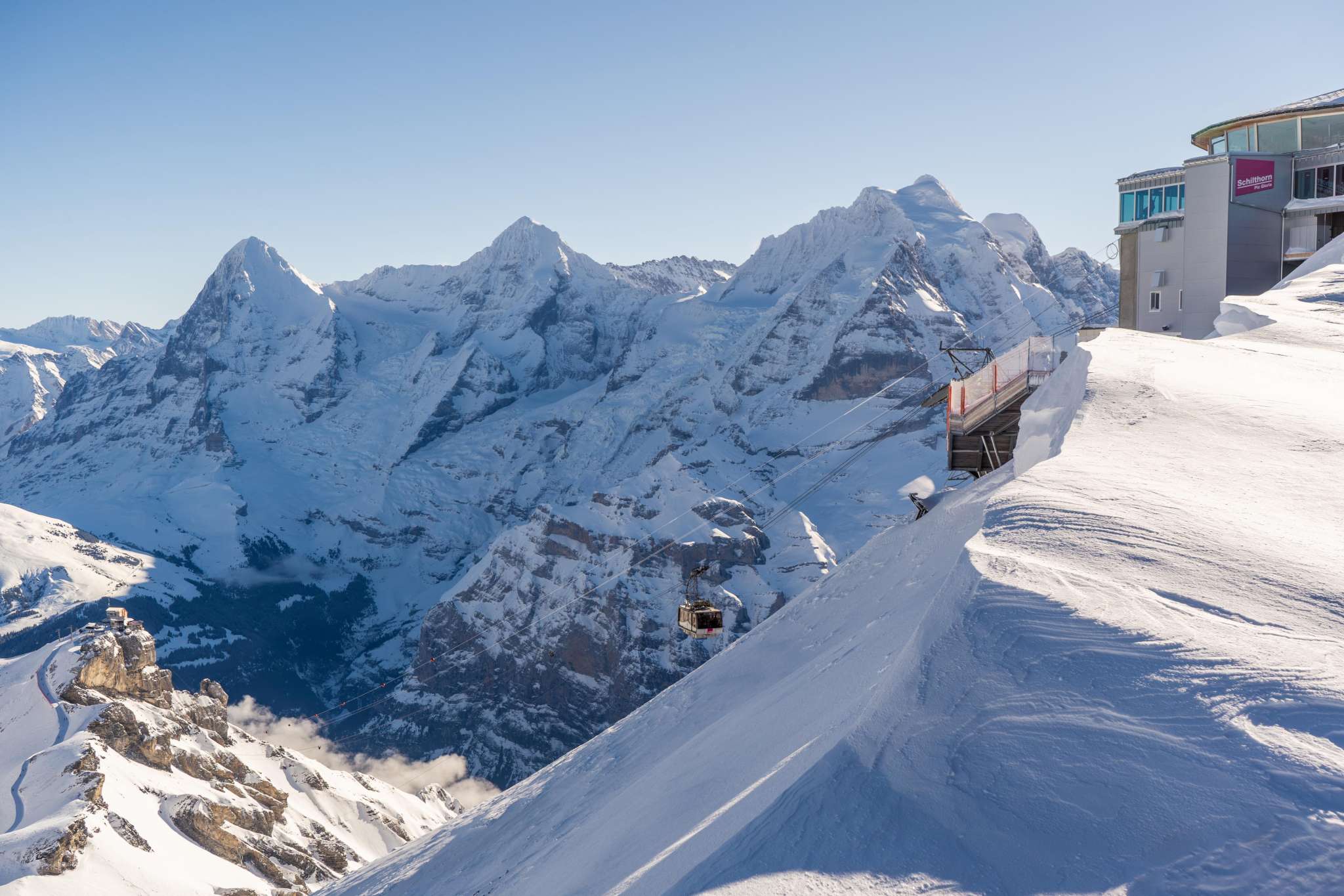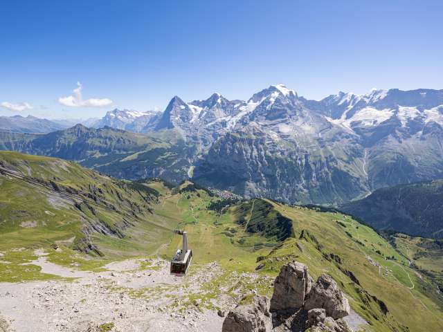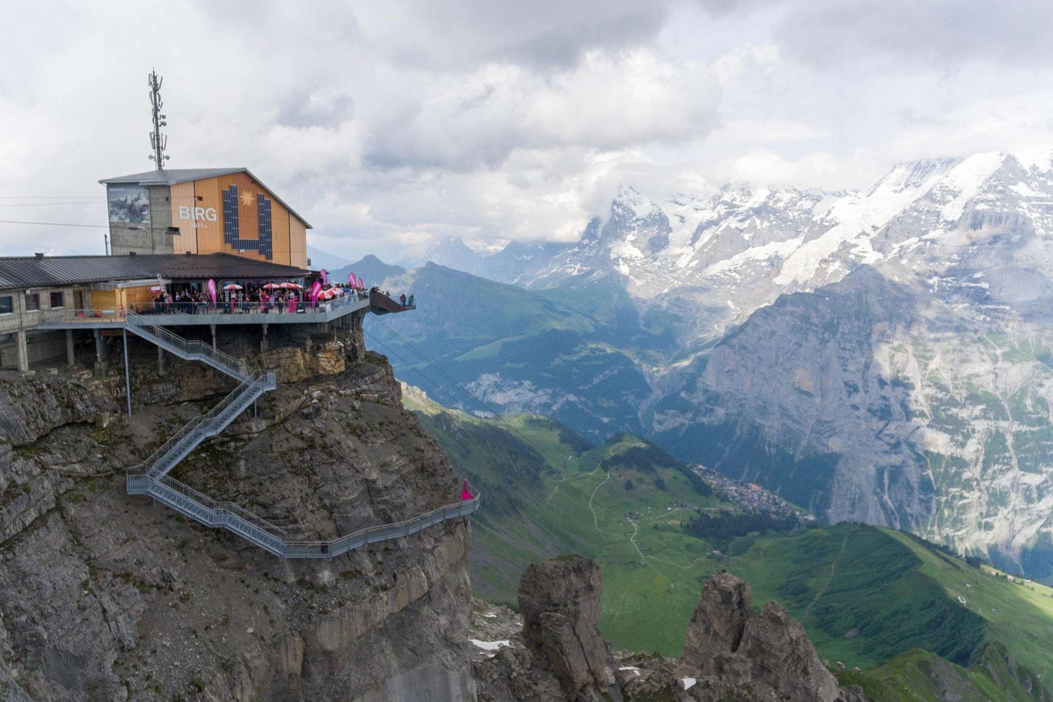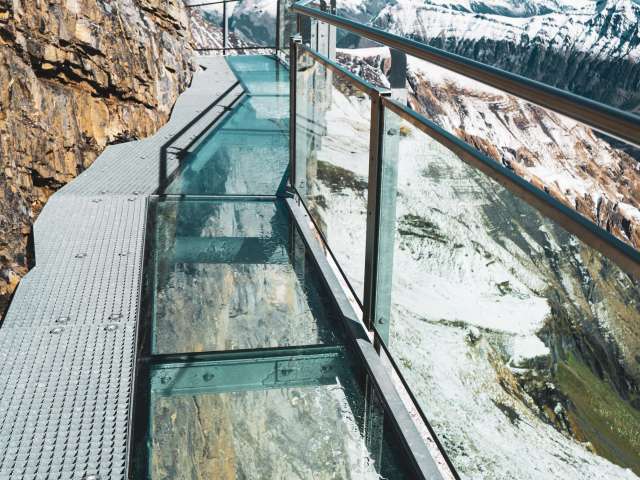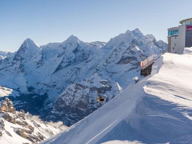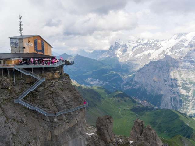 An stolzer Lage auf dem Felsmassiv – 1000 m über Mürren – befindet sich Birg, die Mittelstation der Seilbahn zwischen Mürren und dem Schilthorn. Diese Station sorgt für viel Adrenalin, denn hier gibt es verschiedene ausgesetzte Bauten. Es lohnt sich eindeutig, hier auf dem Weg zum Schilthorn einen Stopp einzulegen um sich die Attraktionen anzusehen. Im Sommer sind hier vor allem Ausflugsgäste, die über den Thrill Walk gehen und auf der Plattform unzählige Selfies schiessen. Im Winter ist Birg ein zentraler Punkt des Skigebiets. Viele starten hier ihren Skitag und lassen ihn mit den letzten Sonnenstrahlen und einem Kaffee Schnapps auf der Terrasse ausklingen. Das Bistro mit grosser Sonnenterrasse sowie zwei Attraktionen mit bester Sicht auf Eiger, Mönch und Jungfrau erwarten dich hier. Thrill Walk Der Thrill Walk führt von der Sonnenterrasse hinab in die senkrechten Wände des gewaltigen Birgmassivs. Die Stegkonstruktion schmiegt sich den Felsen entlang, schwingt sich unter der Aussichtsplattform und Seilbahn durch, um schliesslich unterhalb der Bergbahnstation wieder auf festen Grund zu stossen. Der Felsensteg enthält verschiedene Abschnitte: ein Spiel aus Luft, Glas und Gitter. Nach rund 20 Metern Weg über einem Glasboden folgen zehn Meter über Viehrostboden-Elemente. Zudem sind acht Meter Nepalsteg sowie ein acht Meter langer Kriechtunnel für Kinder Teil des Stegs. Swiss Skyline Die Panorama-Plattform Skyline Walk lädt zum Rundgang mit Nervenkitzel ein: Direkt an die Birg-Terrasse angebaut führt die Plattform über den senkrechten Abgrund und gibt den Blick über das Panorama bis ins Bodenlose frei. Die Konstruktion, vorwiegend aus Stahl und Glas sowie einem Boden aus Gitterrosten, fügt sich durch ihre eckige Form nahtlos in die Landschaft rund um die exponierte Station Birg und die kantige Felslandschaft ein. Bistro Birg Das Bistro hat eine Terrasse, die grösser ist als der Innenraum. Grund dafür: Draussen ist es einfach schöner. Angeboten werden Getränke sowie warme und kalte Speisen. Birg liegt oberhalb von Mürren auf 2677 m ü. M. und ist am einfachsten mit der Seilbahn zu erreichen. Im Winter führt zusätzlich der Sessellift Riggli von der Schilthornhütte bis nach Birg. Im Sommer liegt die Station auch an einem Wanderweg.