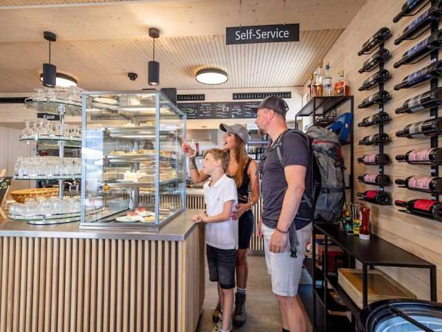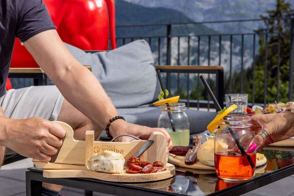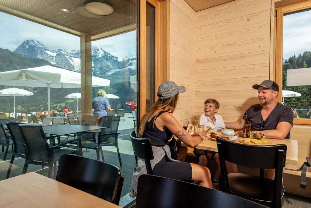 Ob ein entspannter Wanderausflug oder eine abwechslungsreiche Bergabfahrt mit dem Bike: Eine kleine Pause tut immer gut. Direkt auf dem Dach der Seilbahnstation Grütschalp lädt das charmante Bistro zum Verweilen ein. Es dient als Startpunkt für panoramareiche Wanderungen und einen Freeride-Trail für erfahrene Mountainbiker*innen. Ganzjährig wird du hier mit einem kleinen, aber durchdachten Angebot an Snacks und Getränken verwöhnt – sowie einer atemberaubenden Aussicht auf das Dreigestirn Eiger, Mönch und Jungfrau. Hier bleibt man gerne mal auch etwas länger sitzen.