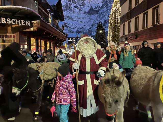 In Grindelwald zieht der Samichlaus mit Schmutzli und Eseln durchs Dorf und sorgt für winterliche Feststimmung.