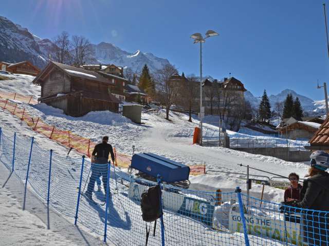 Keine Warteschlangen und in wenigen Minuten von jedem Hotel und Chalet erreichbar: Das Übungsgelände für Schneesporteinsteiger*innen befindet sich im Herzen von Wengen, einem Dorf mit Weltcup-Tradition. Die Nähe zu den traditionellen Lauberhornrennen beflügelt dich sichtlich in deinem Lernfortschritt.