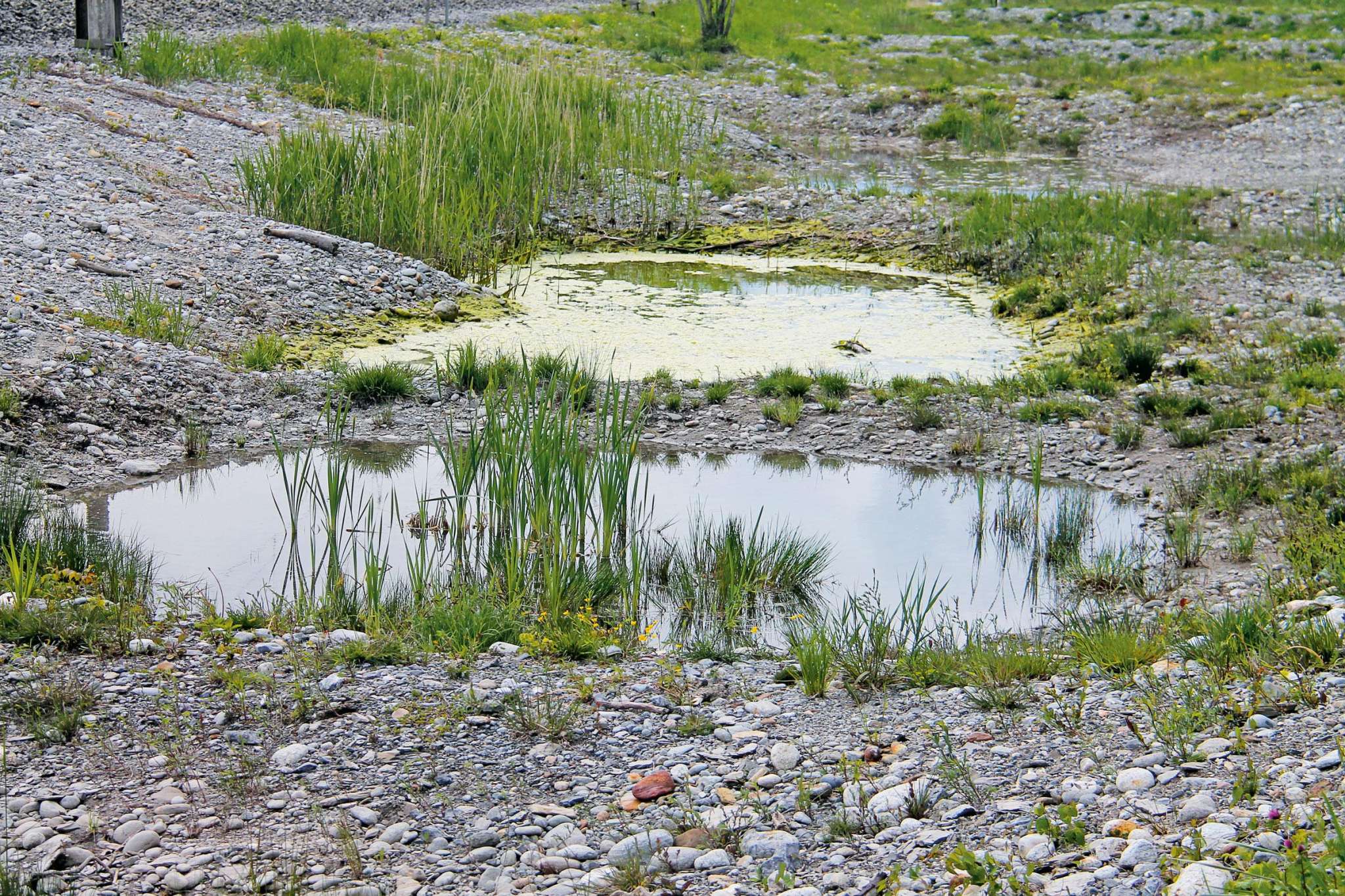 Auen sind faszinierende Bereiche von Bächen, Flüssen und Weihern, die periodisch von Wasser überflutet werden. Bei Hochwasser wird eine Aue überschwemmt, so dass immer wieder neue kiesige Flächen entstehen, und ständig neue Lebensräume für Pioniere unter den Pflanzen und Tieren geschaffen werden. Der Funtenensee, die Tümpel auf den kiesigen Pionierflächen und der vernässte Wald sind wichtige Lebensräume für die geschützten Amphibien und andere Tiere, die es hier zu entdecken gibt.