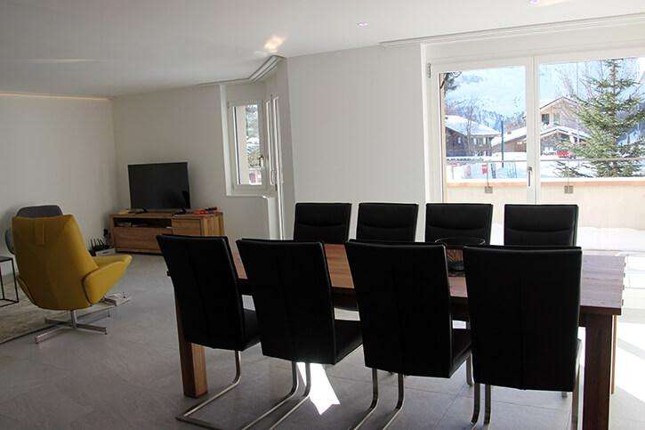 The apartment has a large living area, 3 bedrooms with 3 double beds (6 people) + possibly 1 baby cot, 2 bathrooms, 1 living room with open-plan kitchen (Nespresso, combi-steam, dishwasher) and a large balcony with wonderful mountain views!