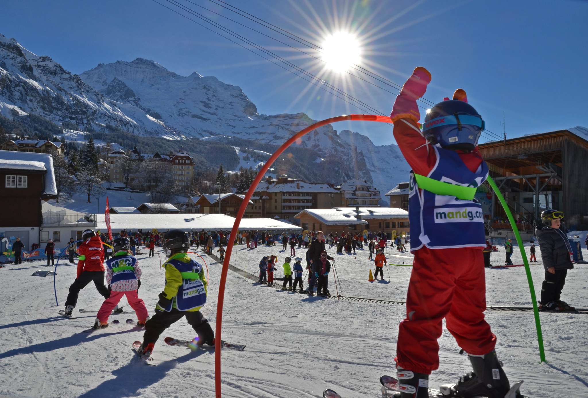 No queues and accessible in just a few minutes from every hotel and chalet: The practice area for snow sports beginners is located in the heart of Wengen, a village with a World Cup tradition. The proximity to the traditional Lauberhorn races visibly boosts your learning progress.