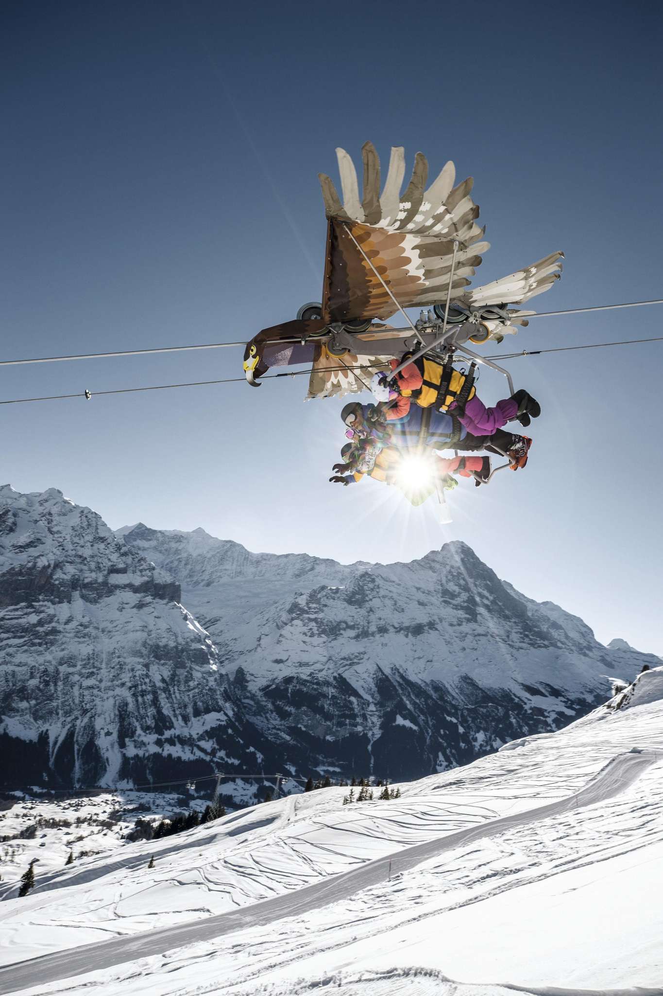 Flying with a bird of prey can be exhilarating. That's when the eagle called First Glider takes you on an airy journey. You soar through the mountain air on your belly and enjoy the panorama and speed: first, the First Glider pulls you backwards from Schreckfeld to First at 72 kilometres an hour. On the way back, you then really take off with the Adler. It and its passengers hurtle down the 800 metre long flight route at speeds of up to 83 kilometres per hour.