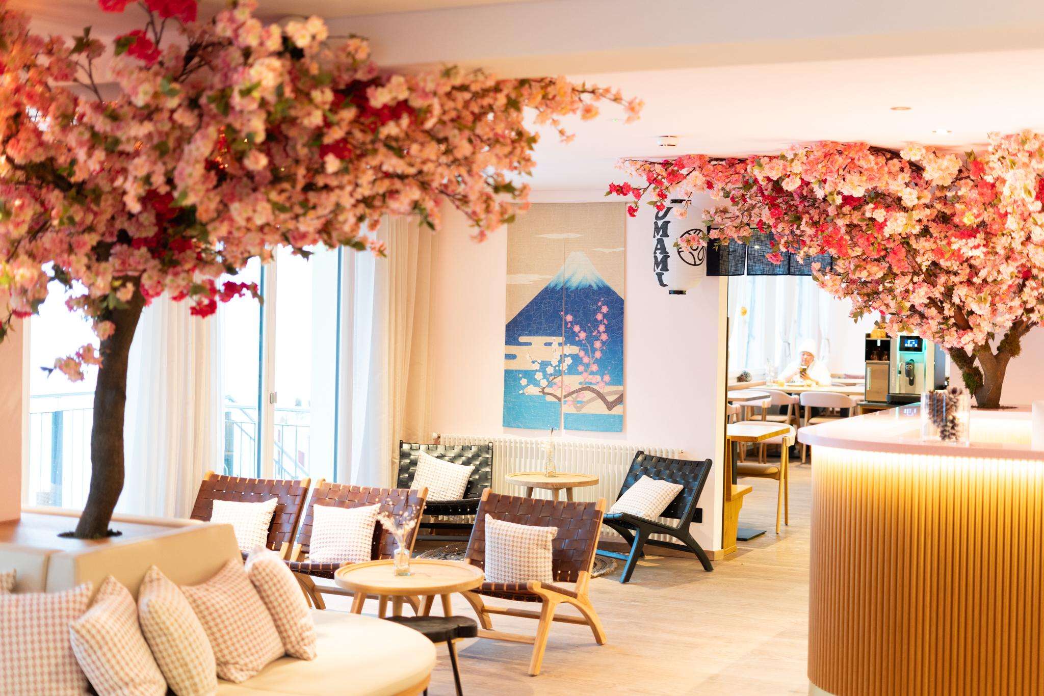 Welcome to Grindellodge, where alpine charm meets the delicate beauty of sakura.