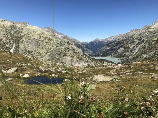 Climbing route with a view of the Gelmer funicular railway
