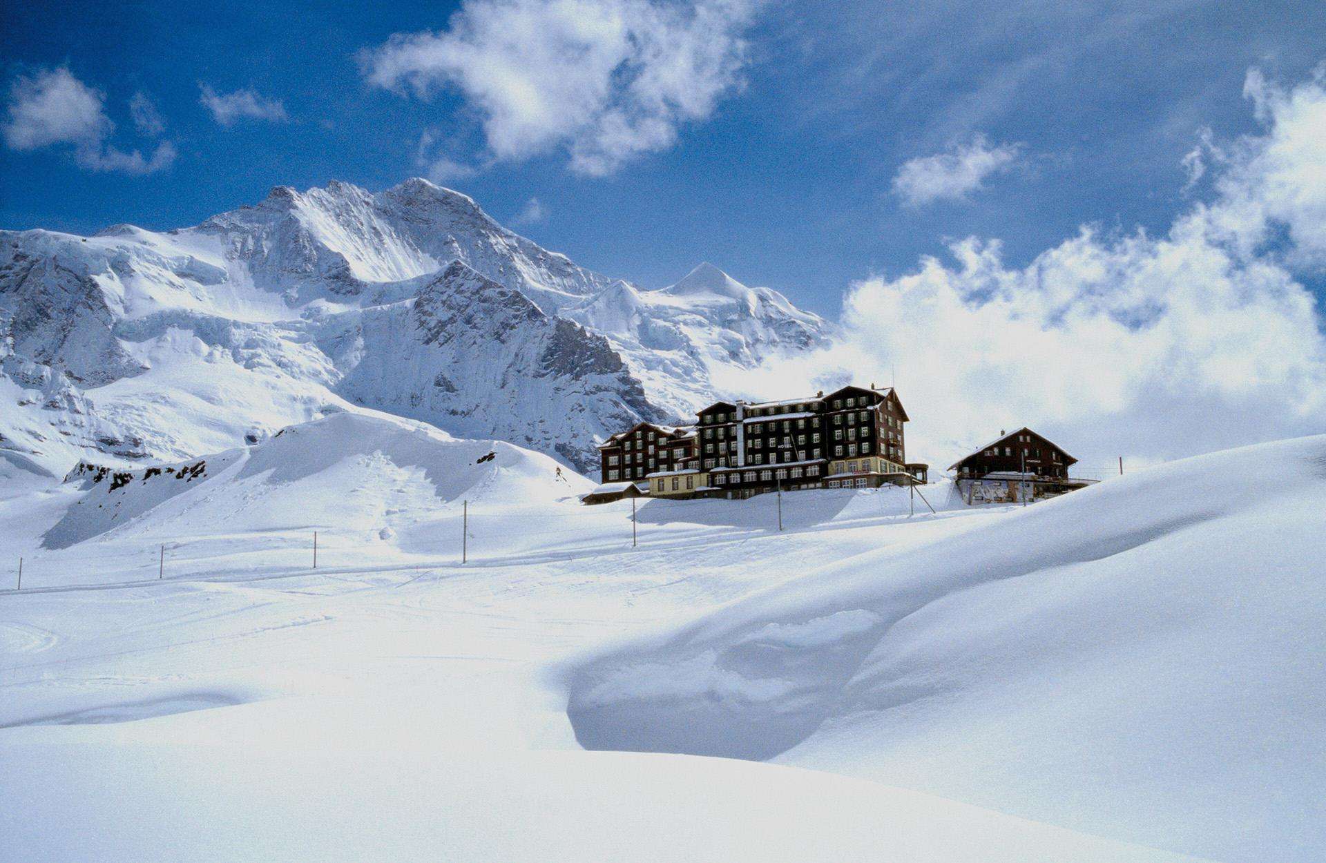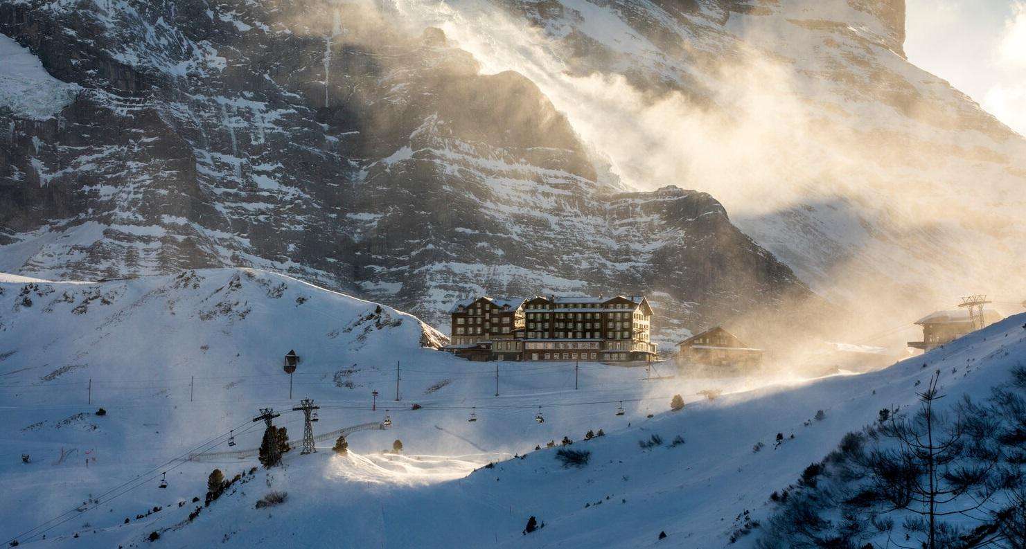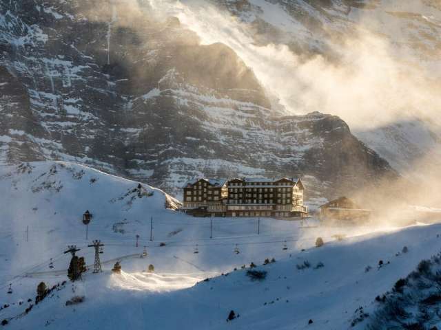 The Hotel Bellevue des Alpes is one of the few grand hotels of the 19th century still in existence. It is located on Kleine Scheidegg, high above Grindelwald and Wengen, at 2070 metres above sea level, at the foot of the Eiger, Mönch and Jungfrau, surrounded by alpine beauty. As the centre of the skiing and hiking region, Kleine Scheidegg is also the direct starting point to the Jungfraujoch. The historically significant hotel is still run as a family business today. Attached to the hotel is a daytime restaurant with 150 seats.