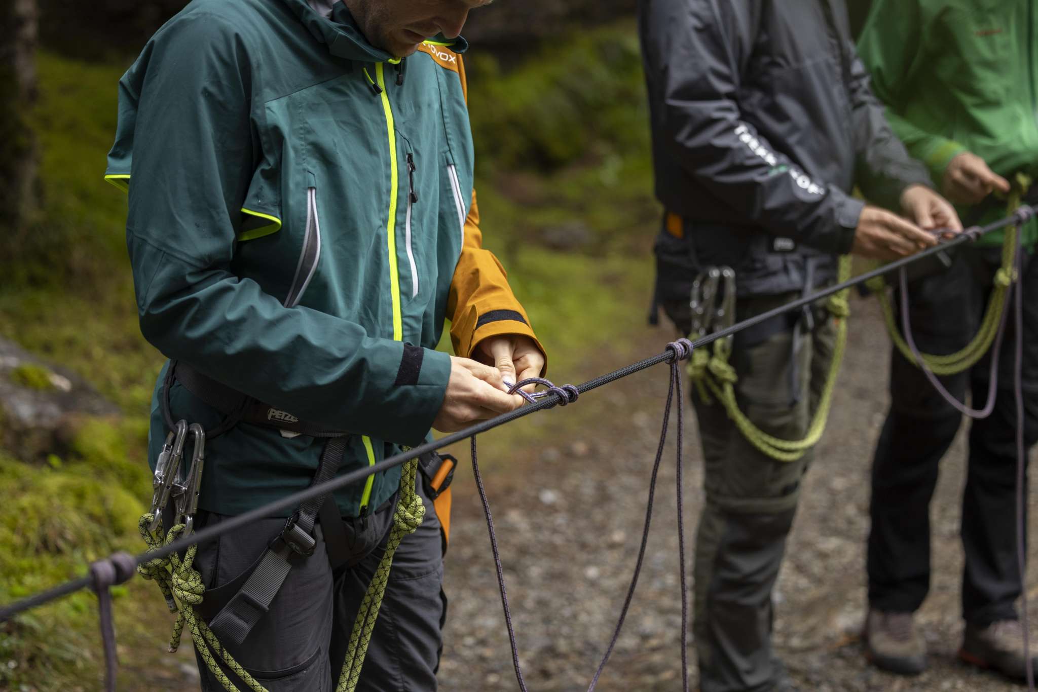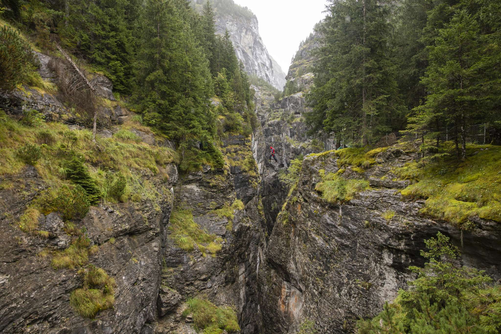 Your OUTDOOR guides will be happy to tell you about the geological history of the glacier gorge as well as its economic importance for the tourism industry in the Jungfrau region. Still not satisfied and hungry for even more mountain adventures? Have you long been tempted by the idea of scaling a vertical rock face? A good way follow up the bridge-building activity, especially for larger groups, is an introduction to rock climbing or the thrill of abseiling down the rock face of the glacial gorge. Adding this activity to the schedule makes it possible to avoid longer wait times since we can complete your activities in two separate groups at the same time. For the “Climbing and Abseiling” package, you will receive expert guidance from the people at OUTDOOR.
