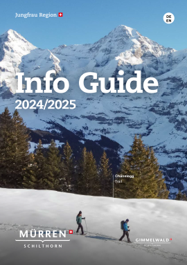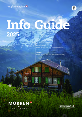Our summer and winter guides provide you with 60 pages of information and insider tips on the most beautiful excursion destinations and activities in the Jungfrau Region. The free guide also includes culinary recommendations and historical facts. It is available in German, English and French. You can download the latest version on this page. You can also download our image brochures, adventure maps and village maps.