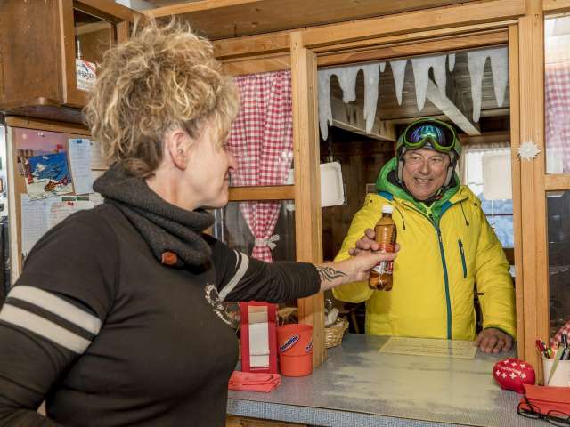 En hiver, tu atteindras la cabane du Schilthorn en quelques minutes avec le télésiège Muttleren ou Kandahar. A pied, tu peux y arriver en 40 minutes environ à partir de la station Birg (en descente). Ou bien à partir de Mürren via Kanonenrohr en environ 2 h 15 (en montée).