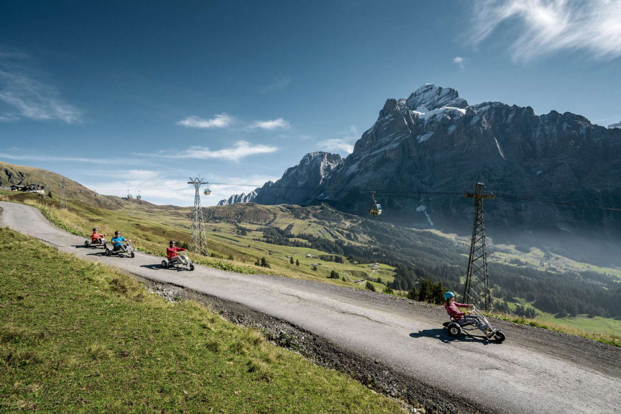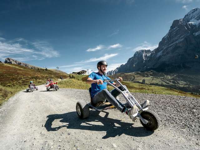 Le Mountain Cart, un mélange de kart et de luge, convient aux enfants mesurant au moins 135 cm. Des casques de protection sont mis gratuitement à disposition.