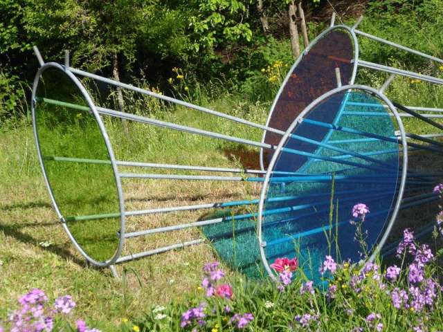 Les sculptures exposées, de préférence dans le sens constructif, offrent un contraste saisissant avec cette idylle et peuvent être découvertes sous les angles les plus divers grâce à la modulation du terrain.