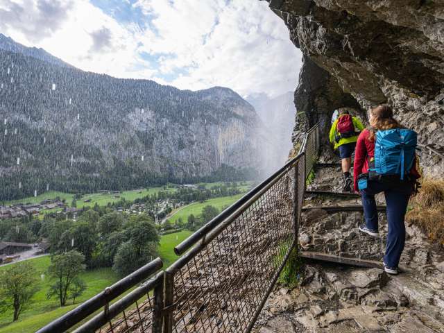 La randonnée est facile et convient également aux poussettes (l'accès aux chutes de Trümmelbach est interdit aux enfants de moins de 4 ans).
