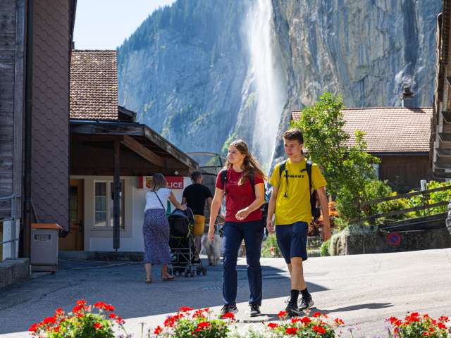 Découvre le paysage fascinant de la plus belle vallée en auge des Alpes et approche-toi des cascades. Admire les chutes d'eau les plus hautes, les plus pittoresques et les plus rugissantes pendant la randonnée de Lauterbrunnen à Stechelberg.